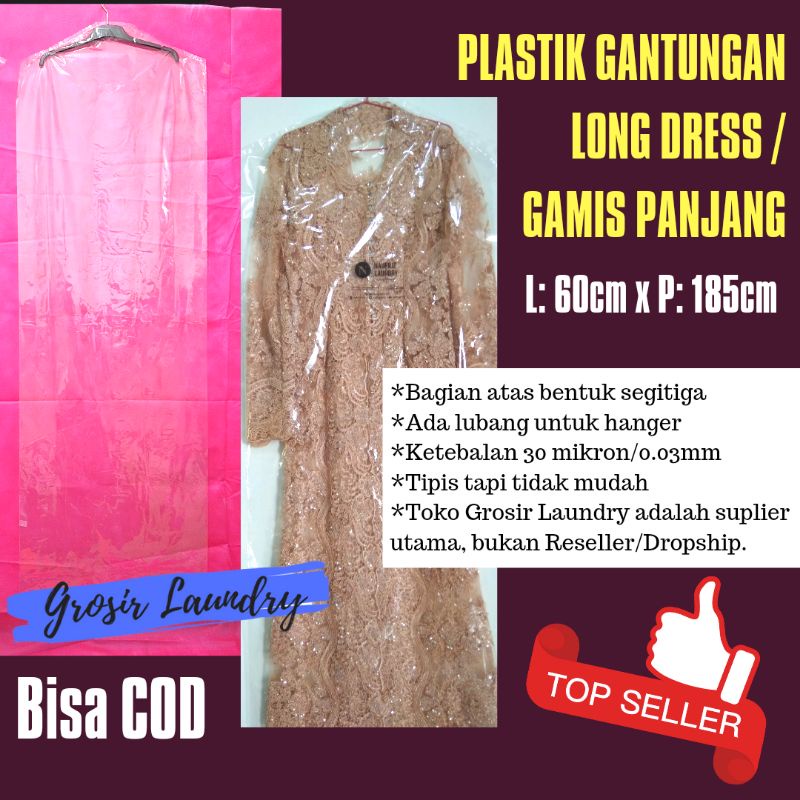 Pusat Grosir Perlengkapan di Kabupaten Karangasem Cover Gaun Dress Gamis Isi 25 Pcs Uk.60x185- Plastik Gantung Display Laundry / Londry Gantungan Baju dari Grosir Laundry Kota Yogyakarta