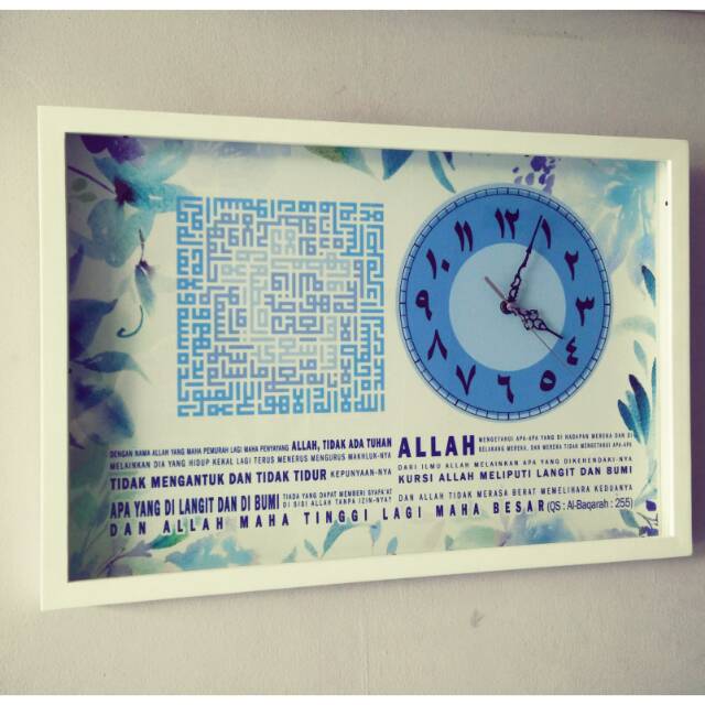 Banting Harga Perlengkapan di Kabupaten Sukabumi Hiasan Jam Dinding Kaligrafi Ayat Kursi Kufi Shabby Biru Uk 30x40 dari Tidak Ada Merek Kota Tangerang