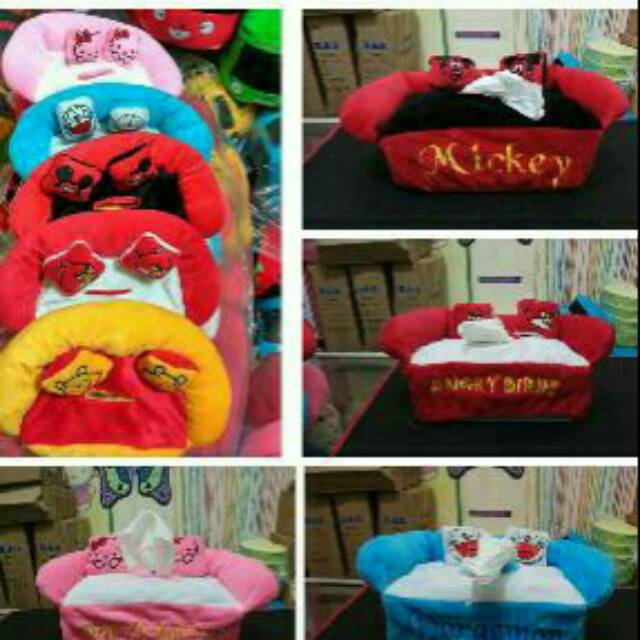 Sarung tempat tisu buat mempercantik tempat tisu anda dengan karakter yg unik dan lucu2.Terbuat dari bahan velboa ha