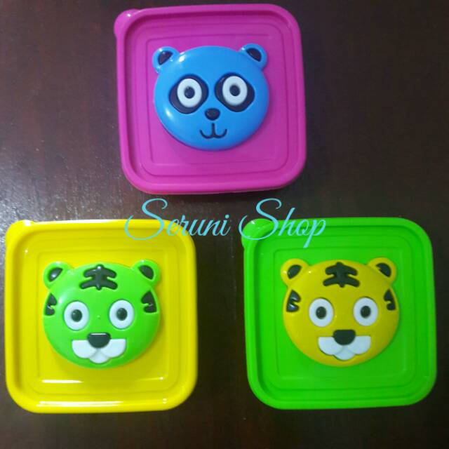 Tempat makan anak dengan ukurang sebagai berikut : P: 12,5 cm L: 12,5 cmT : 5 cmDengan motif karakter sebagai berikut: - baby panda- baby tiger- baby catAda 3 warna :- unggu- kuning- hijauMinimal pembelian 1 pcs barang yg sudah dibeli tidak dapat dikembalikan.#Souvenirulangtahunanak#Hadiahlomba#Dorprize#Acaralombaanak#Acaralainnya#untukperlengkapanacaraanak#Had